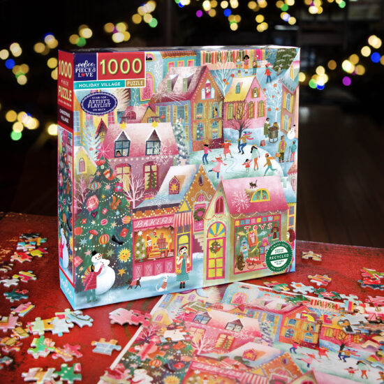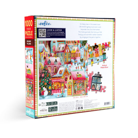 eeBoo 的 Holiday Village 假期村莊 1000 片拼圖,拼湊出節日的歡樂氣氛,一個充滿活力來慶祝這個季節。這個溫馨的謎題展開後,展現了一個熙熙攘攘、白雪覆蓋的村莊場景,閃爍的燈光、快樂的村民和節日裝飾。成為假日季節的一項喜慶且引人入勝的挑戰。這款拼圖由再生紙板製成,並使用植物油墨印刷在 FSC® 認證的紙張上,以支持永續實踐,同時提供一流的娛樂。附有一張原圖精美海報,可引導您組裝拼圖,使其成為送給所有年齡段拼圖愛好者的禮物。